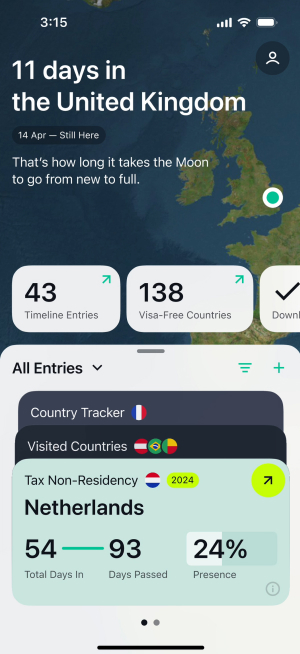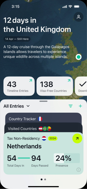 Your travel, residency and visa data is stored locally only on your device. We do not collect, nor store, your information on our servers.