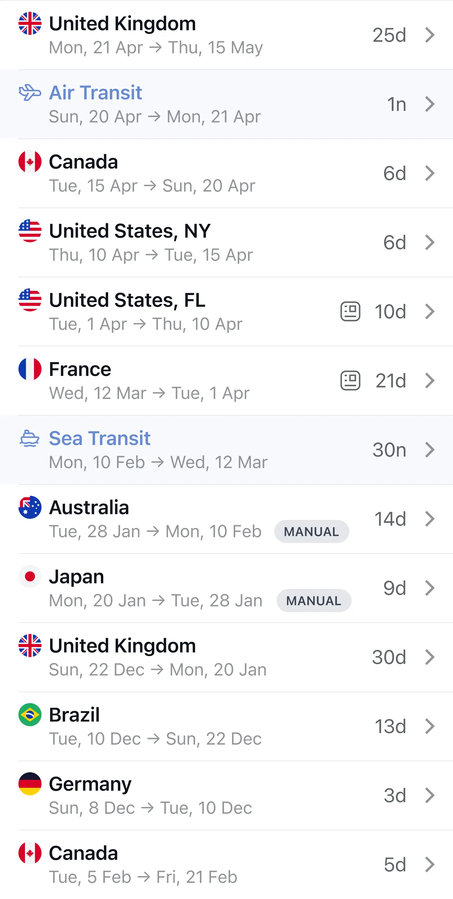 Flamingo Compliance automatically records your border crossings into different countries and US states, while diligently tracking your visas and visa-free stay limits. Whether you travel for business or leisure, the app allows you to view and manage your trip history, add details, and plan upcoming journeys.
