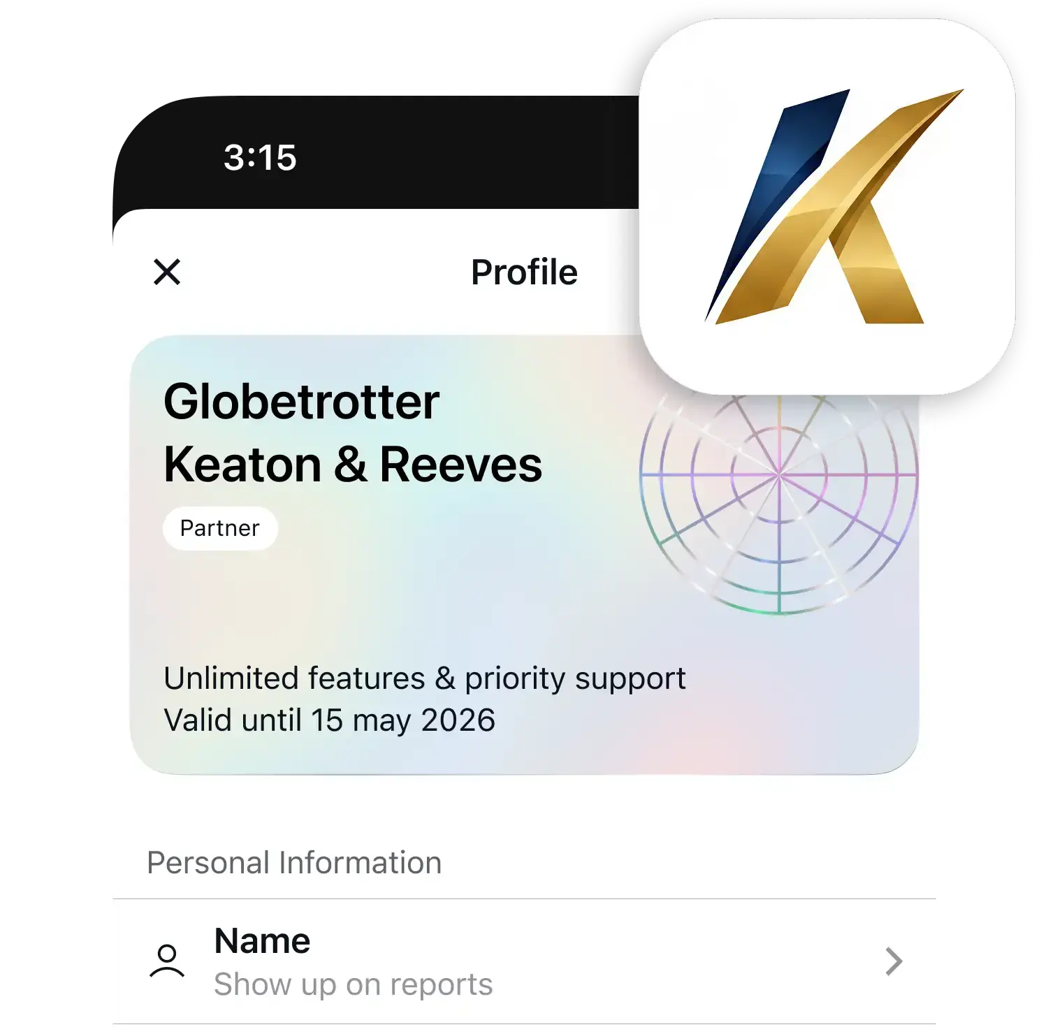 Your firm’s name appears in every client’s plan, with custom app icon branding for Premium partners.